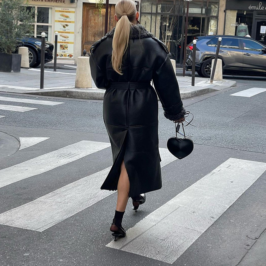 Nina™ | Luxus Patchwork Leder- und Lambwollmantel