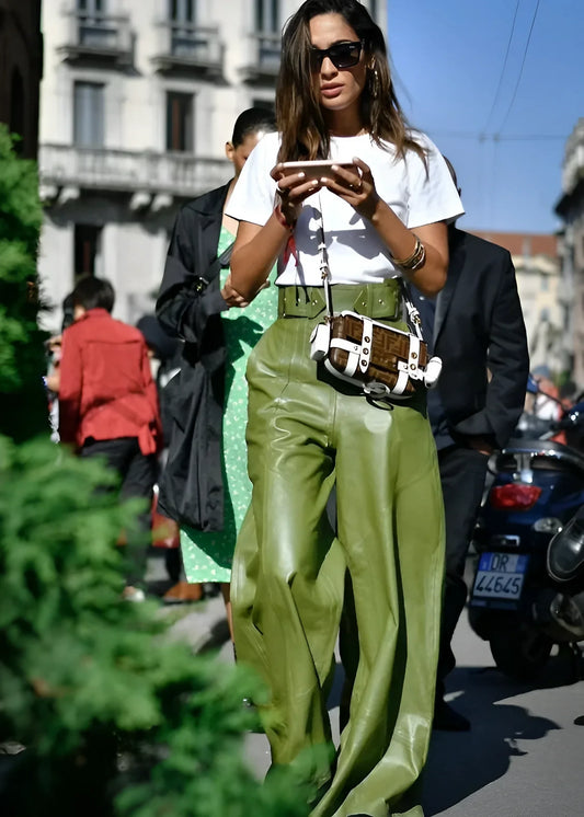 Sophia™ - High-Waisted PU-Lederhose mit Weitem Bein
